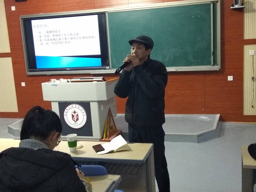首先,德育处副主任张丽华对期末阶段的工作做了详细安排:(1)各班要做好会考考场的卫生工作。(2)期末复习周要严抓课堂质量,做好学生自习课出缺勤管理,明确每个学生的去处。(3)做好游学营会议和游学活动家长会的通知以及其他相关工作。(4)根据学校给出的比例关系,各班利用班会课做好班级操行评定工作。(5)积极做好诚信考试、严防考试舞弊的教育引导。(6)建议年段长和班主任在寒假期间做好下学期工作的大致计划等。