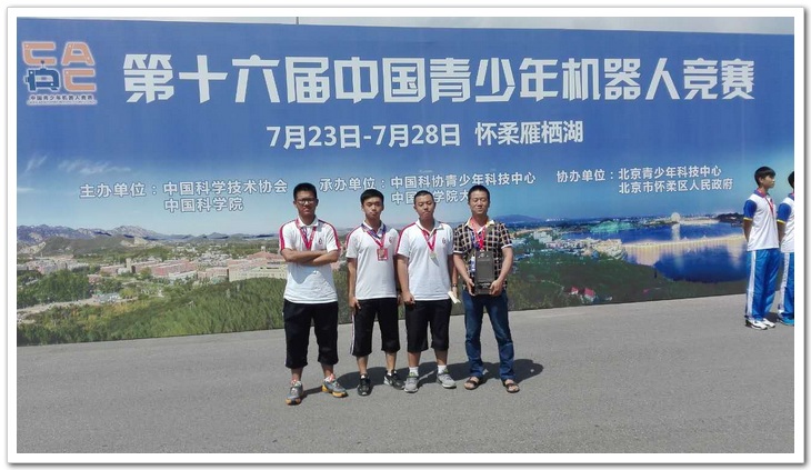 机器人是“制造业皇冠顶端的明珠”。7月25日至28日,来自全国各地的497支代表队、1400多名立志摘取这颗明珠的中小学生,齐聚中国科学院大学(简称国科大)雁栖湖校区,参加第16届中国青少年机器人竞赛。本届机器人竞赛是中国科协首次与中国科学院联合主办,也是首次由一所大学(国科大)来承办。这届比赛规格之高,赛事组织安排之周密,参赛队伍素质之强,现场执裁之公平公正创历年国内机器人竞赛之最。各省市十分重视,通过层层选拔派出了精兵强将参赛。中央电视台《新闻联播》播报了比赛盛况。福建师大附中代表队经层层选拔作为福建省唯一一支高中组代表队(教练:夏洪江老师,队员:高一学生陈星熠、林烁、李泽成)参加此次竞赛。赛前他们参加了省里组织的赛前集训和学校组织的强化训练,在心理素质、竞技技能等方面都做了充分的准备。在此次竞赛中他们对抗强手、过关斩将,最后杀入决赛,夺得了VEX机器人挑战赛高中组亚军,同时获得最佳判断奖(奖杯),充分展示了附中学生的实力,赢得了荣誉。