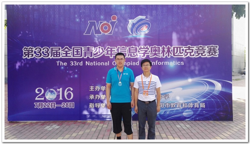第33届全国信息学奥林匹克竞赛于2016年7月21至28日在四川省绵阳市南山中学举行,来自全国30个省市自治区的500名选手展开了激烈角逐。在两天激烈上机竞赛中,我校高三孙泽宇同学沉着冷静、勇于拼搏,获得金牌,并获北京大学“本一线录取”的自主招生资格。指导教师:周成。