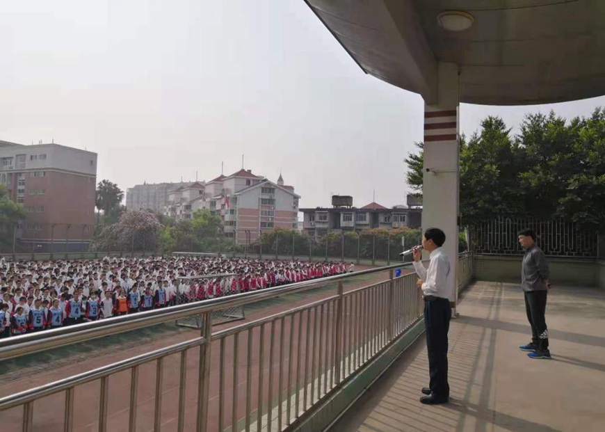 集合后,学校分管安全的王焕蒲校务委员对本次演练活动进行有针对性和指导意义的点评,强调了举行消防应急疏散演练的意义,要求全体师生树立危机应急意识,加强消防安全常识学习,提升安全素养。保卫科长周启瑞老师肯定了演练的成功之处,同时指出了演练需要改进之处,并布置了安全教育周的安全教育内容和要求。