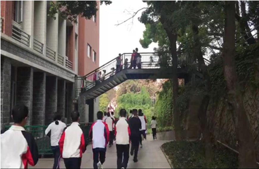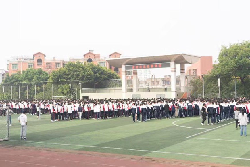 演练前,保卫科根据方案部署演练工作,明确分工职责,确保演练的有序性和有效性。演练中,随着火险警报的响起,正在上课的老师们立即停课,组织班级学生成两路纵队分别从前后门往疏散口行进;参加演练的秩序导护老师们迅速到达指定岗位,组织引导学生按疏散路线有序撤离到田径场安全地带。整个演练过程用时5分30秒,应急疏散过程行进路线明确、人员分流到位、紧张有序,收到了预期的效果。