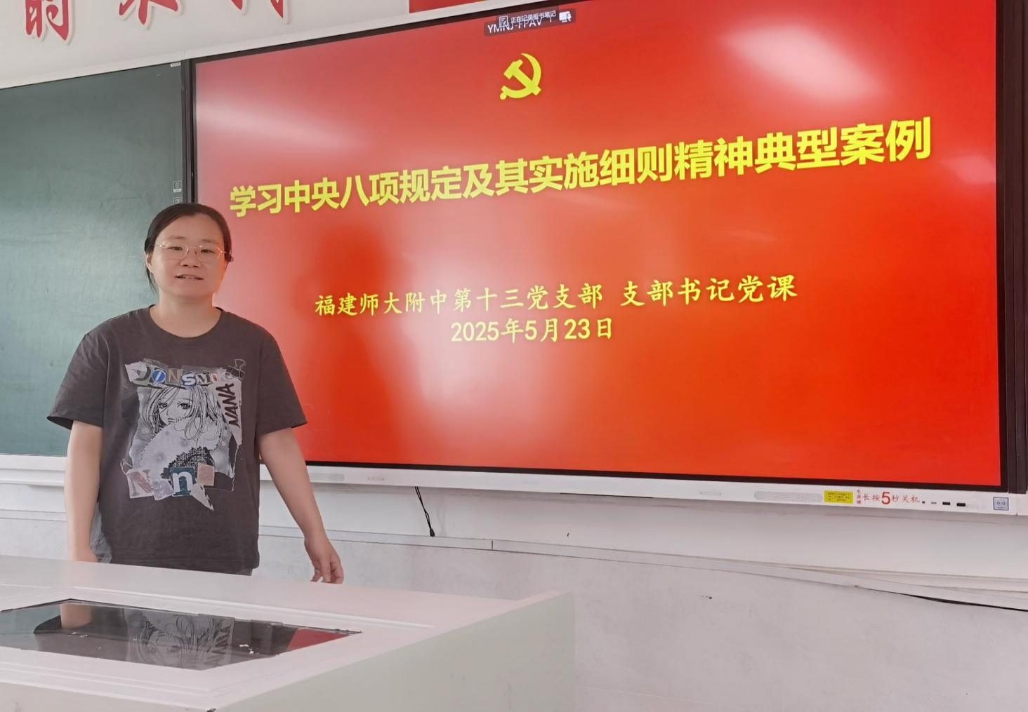 第十三党支部书记孙娟同志以《学习中央八项规定及其实施细则精神典型案例》为主题,从中央八项规定制定原因、中央八项规定内容、违反中央八项规定典型案例等方面展开授课。通过党课,党员们纷纷表示,通过学习,深刻认识到作风建设的重要性。在今后的工作中,将以更严格的标准要求自己,为学校营造风清气正的教育环境贡献力量。
