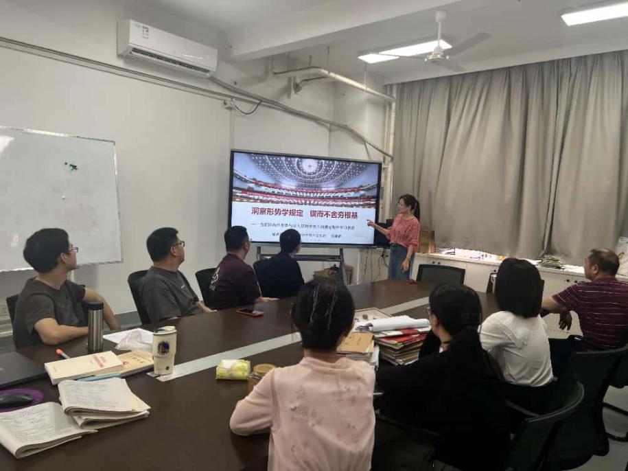 第七党支部书记池小妍同志以《加强作风建设,汲取榜样力量》为主题授课,讲述教师人物事迹,引领党员学习榜样精神,结合习近平总书记关于加强党的作风建设论述,强调作风建设的重要性。通过学习,党员教师们深刻认识到,榜样精神是作风建设的鲜活教材,将立足岗位践行初心,以“四有”好老师标准锤炼务实学风,把总书记嘱托转化为育人动能,在平凡岗位上彰显党员担当,在工作中发挥先锋模范作用,用实际行动答好“为党育人、为国育才”的时代答卷。