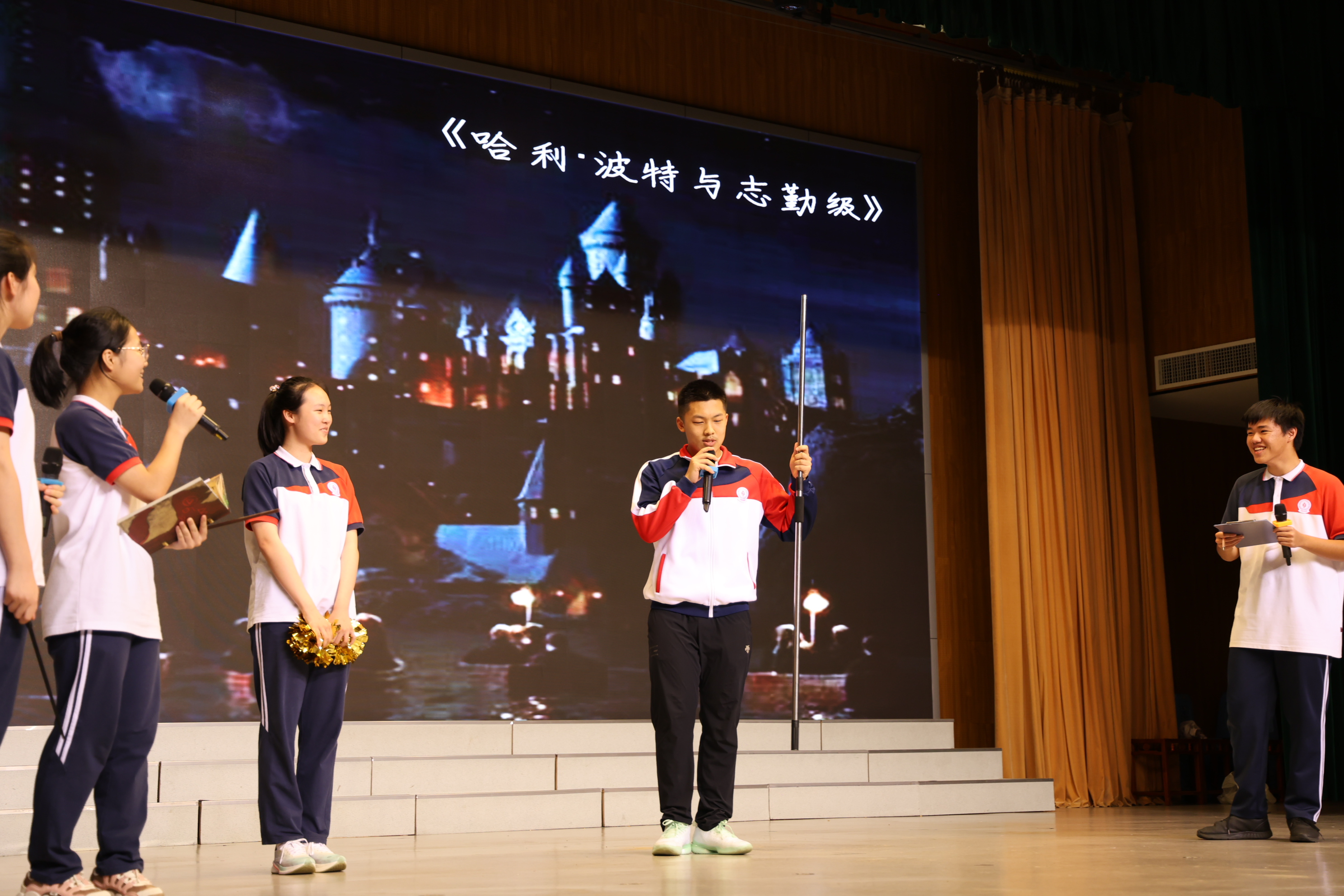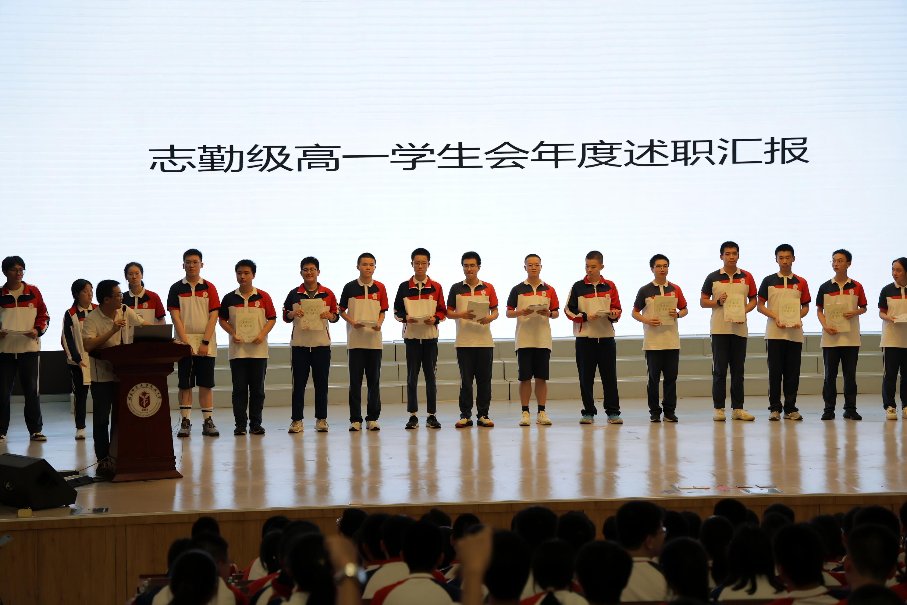 接着,志勤级学生会进行高一学生会年度述职汇报。同学们将自导自演的《哈利波特与志勤级》搬上报告厅的舞台,以幽默新颖的形式,娓娓道来学生会一年的工作成果:从两操点评、五讲四美评比、出勤查岗到志勤之星评比,学生会成员关注和护航同学们校园生活的点点滴滴;班班有歌声、篮球段赛,以及采访成绩优异同学并将经验总结成册,学生会成员牺牲课余时间,用心丰富同学们的校园生活。