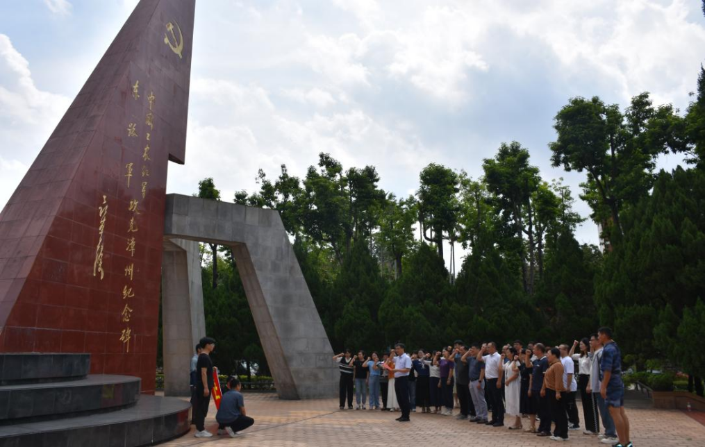 重温红色历史,筑牢信仰根基。6月29日上午,党员们走进毛主席率领红军攻克漳州纪念馆。通过讲解员的讲述,党员们回溯当年红军攻克漳州的烽火岁月,感悟革命先辈不畏艰险、敢于胜利的英雄气概。在毛主席率领红军攻克漳州纪念碑前,邱海锋书记带领全体党员重温入党誓词。