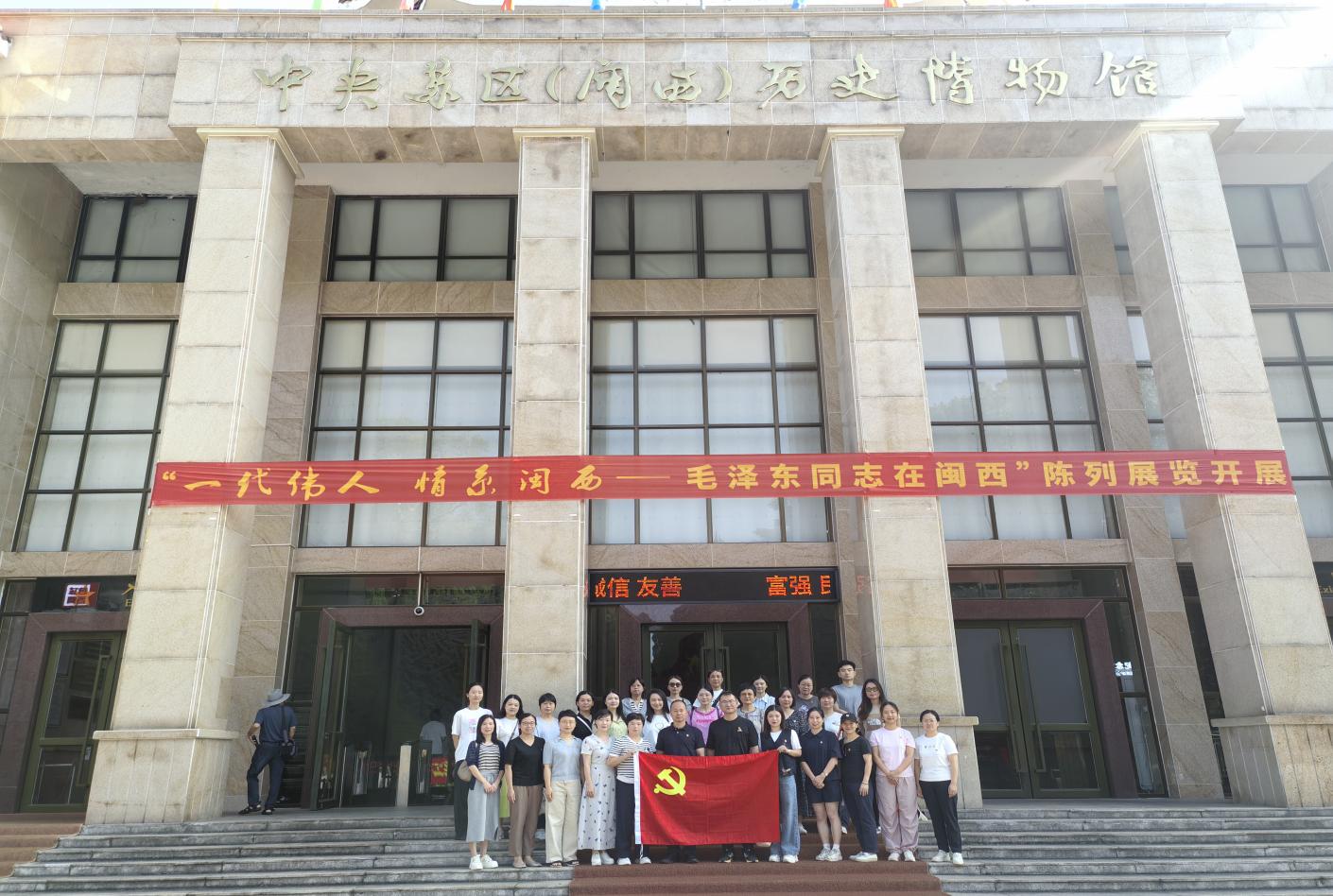 为庆祝中国共产党成立104周年,7月1日至2日,我校第九、第十、第十二、第十三、第十四支部奔赴龙岩,联合开展“追寻红色足迹,传承苏区精神”主题党日活动。