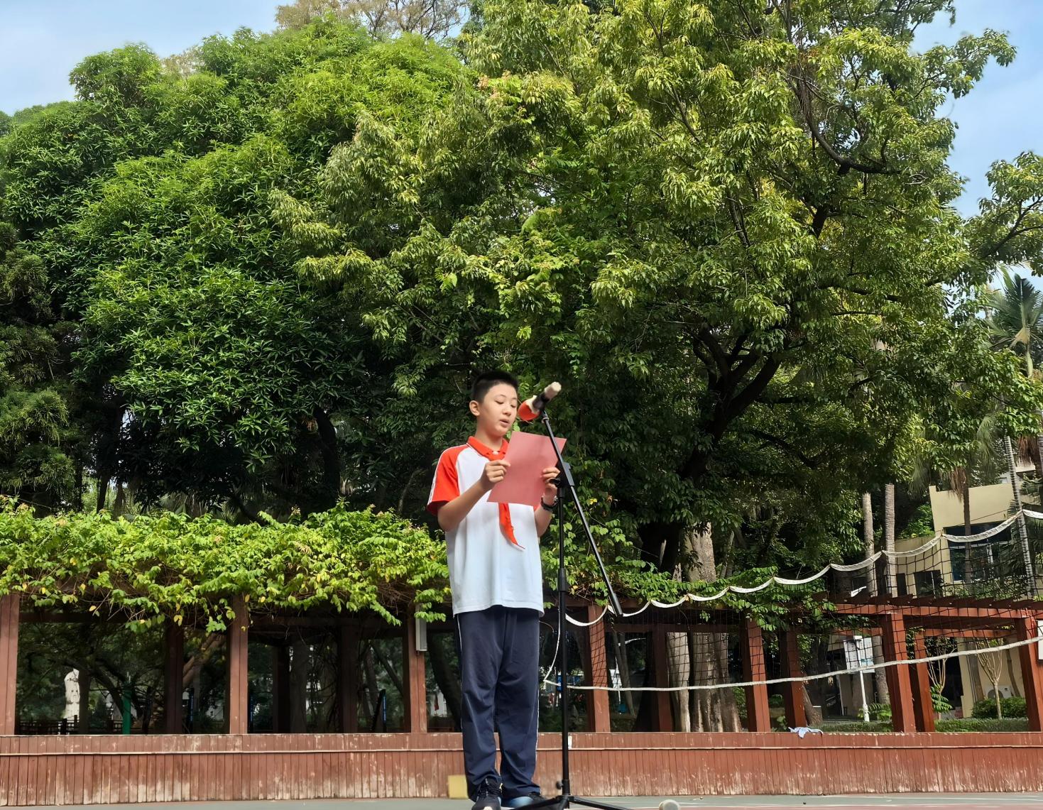 大家好,我是2025级大队副队长陈致远。我国旗下讲话的主题是——强国复兴有我 争当时代好少年。今天,当五星红旗在校园上空冉冉升起,阳光洒在我们胸前的红领巾上,那抹鲜红格外耀眼 —— 我们正怀着无比崇敬的心情,共同迎接中国少年先锋队建队 76 周年的光荣时刻。抚摸这方红领巾,凝视队旗上闪耀的五角星与火炬,周恩来总理少年时“为中华之崛起而读书”的铿锵誓言仿佛就在耳边回响。这抹红,是革命先烈用热血烙下的印记,更是我们新时代少先队员必须扛起的“使命坐标”。