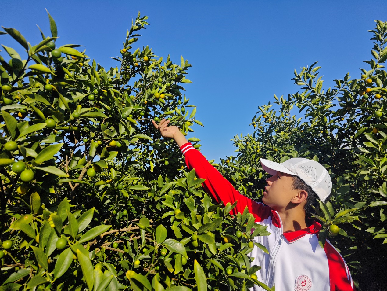 在福清陈家湾的金桔采摘园里,同学们小心翼翼地挑选、采摘成熟的金桔,在亲身实践中体会“一分耕耘,一分收获”的劳动意义,劳动教育的内涵悄然传递。实践区域内,多样活动有序展开:打鼓活动中,同学们配合节奏击鼓,在协作中增强集体意识;制作漆扇与琥珀时,触摸传统工艺,感受文化魅力;书写并悬挂祈福带,将真挚期许化作文字,思想教育悄然渗透。