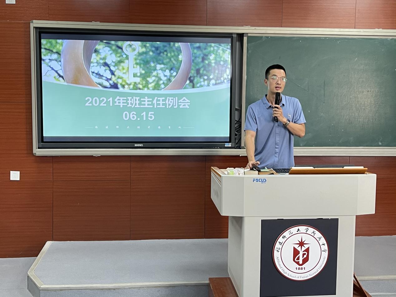 2021年6月15日下午,德育口在润德楼二楼录播教室召开班主任例会。校长温青、校务委员王焕蒲、德育处副主任吴俊杰、彭蔚兰,以及德育专家指导组、各年段段长及班主任、心理指导组、生活指导组出席,会议由吴俊杰主持。