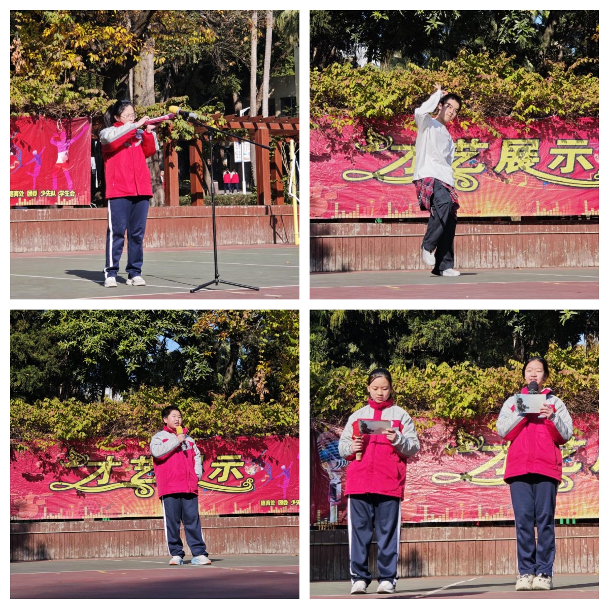 李法炆同学以一首《伯虎说》携诗酒年华的风雅率先登场,引领全场步入古典与现代交融的意境。随后,金楚涵同学带来一段炽热动感的舞蹈串烧,以充满力量的舞步点燃现场,肆意挥洒青春激情。琴声悠扬之处,林芷娴同学以口风琴深情演奏《童话镇》,唤醒了珍藏于时光里的纯真与烂漫。活力持续绽放,曹芸汐与黄子宁同学共同演绎舞蹈《反派》,以凌厉姿态与反转韵律,展现出不被定义的舞台张力。舞步未歇,颜宥嘉、林祉祎与金楚涵同学再度登场,以新一轮的舞蹈串烧让舞台光芒持续闪耀。接着,曹芸汐同学以一曲《昔涟》将众人带入往昔回忆,歌声温柔而深情。最后,赖竑宇和郑启南同学携手献唱《大东北》,以铿锵欢快的旋律将现场氛围推向高潮,为活动画下圆满句号,留下了满满的欢乐与难忘的记忆。