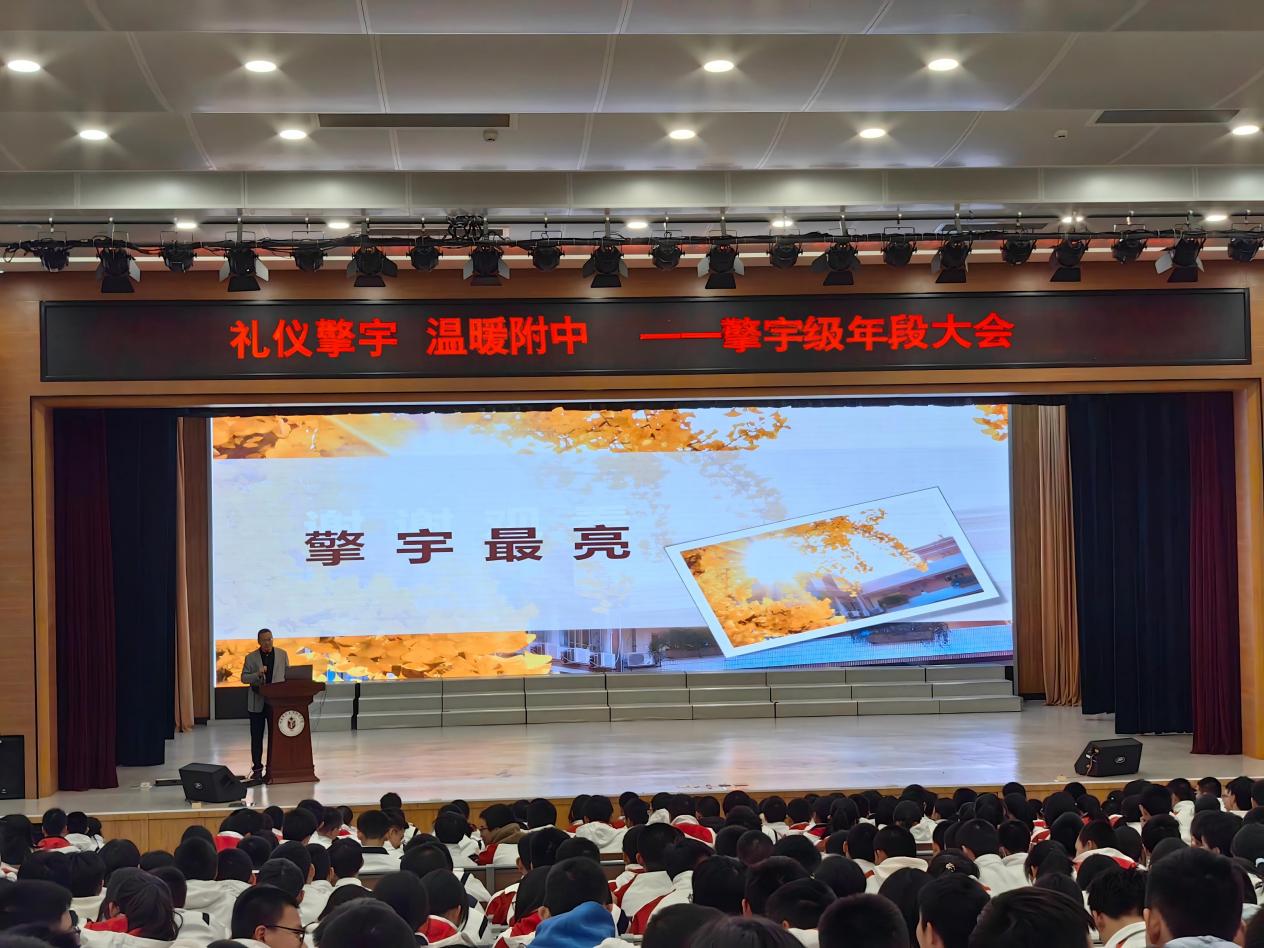 大会现场,高段长宣布启动“礼仪擎宇 温暖附中”争先创优活动,成为整场大会的重磅亮点。她勉励全体擎宇学子,要以自信昂扬的姿态、文明有礼的言行,主动扛起主人翁担当,在践行礼仪规范的过程中凝聚年级力量,共同建设更优秀的年级,成为更好的“附中人”。