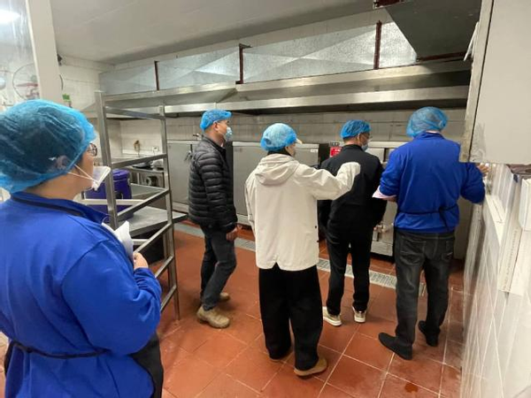 会后,在总务处工作人员的陪同下,膳食委员会家长代表深入初高中食堂后厨、储物区、备餐区等关键区域,实地查看食材存储条件、加工操作规范、餐具消毒流程、菜品留样管理等情况,详细核查索证索票、从业人员健康证明等相关资料。家长代表对我校食堂严格落实政策要求、规范日常管理的做法给予肯定,并围绕优化菜品营养搭配、提升服务质量等方面提出合理化建议。