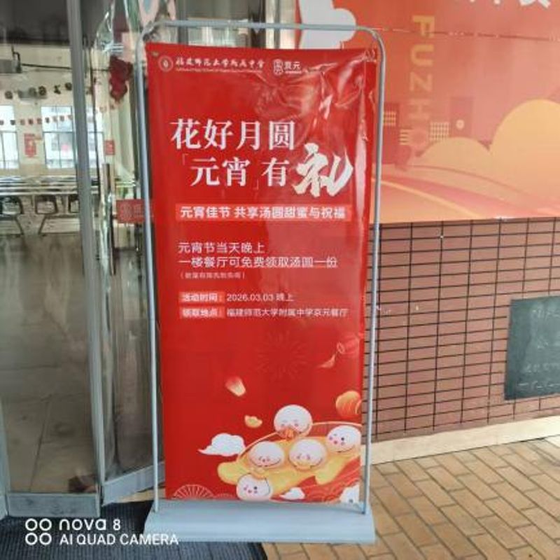 元宵佳节至,温情满校园。为让全体学子感受传统节日的温馨氛围,在团圆暖意中迎接新学期,2026年3月3日晚,我校餐厅精心开展“花好月圆,元宵有礼”元宵节暖心活动,为全校同学送上免费卤鸡腿与暖心汤圆,让传统美味传递校园温情。