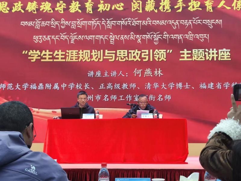 近日,我校校务委员、正高级教师、清华大学博士何燕林在外派担任福建师范大学福鼎附属中学校长期间,应林芝市教育局邀请,赴西藏林芝开展系列主题讲座,聚焦“大中小学思政课一体化建设”,为当地思政教育高质量发展注入先进理念与可落地经验,助力林芝思政教育向精准化、体系化、融合化发展。
