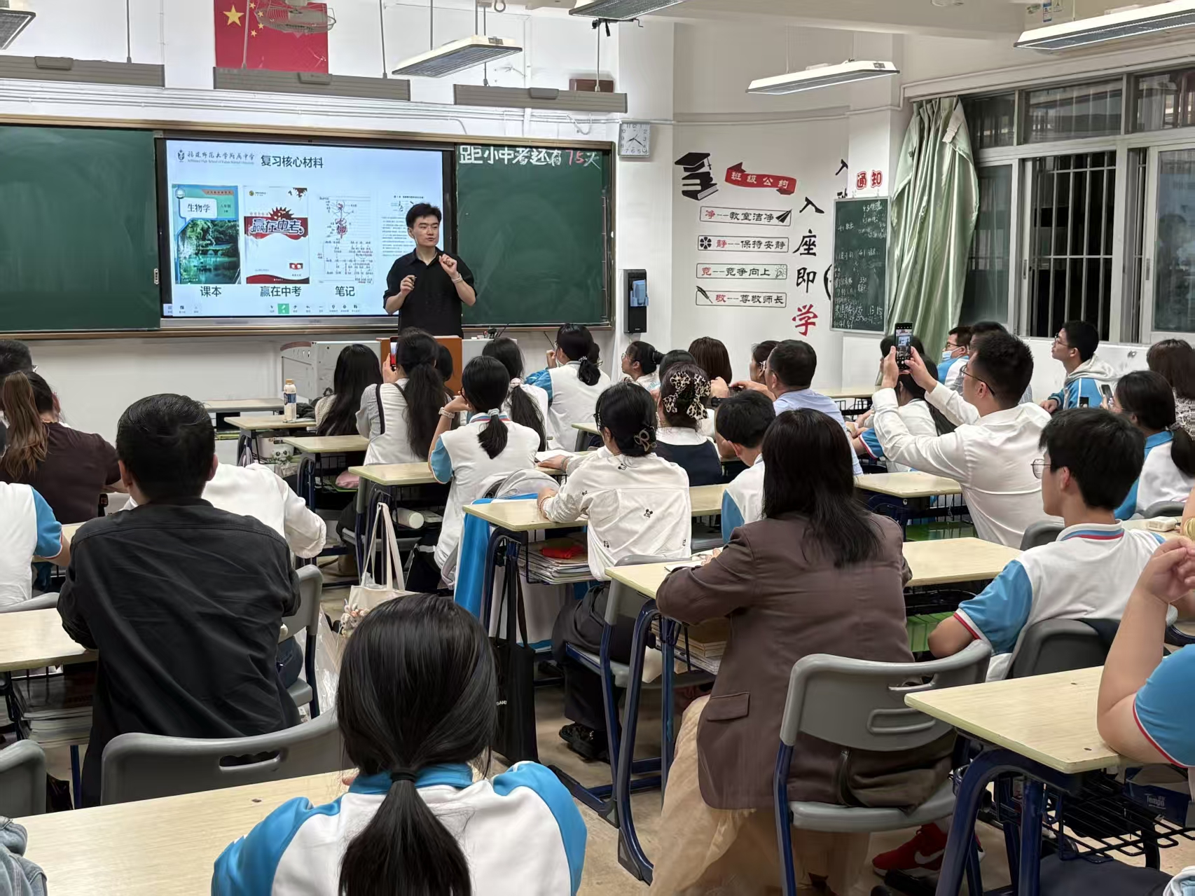 第二阶段,地理、生物两学科备课组长及科任教师分别进班,开展面对面指导。老师们从小中考高频失分点入手,分别梳理了复习框架与训练方法,强调回归教材基础、串联知识网络、专项突破薄弱模块,并呼吁家长每日督促孩子落实基础背诵与地图填图训练。