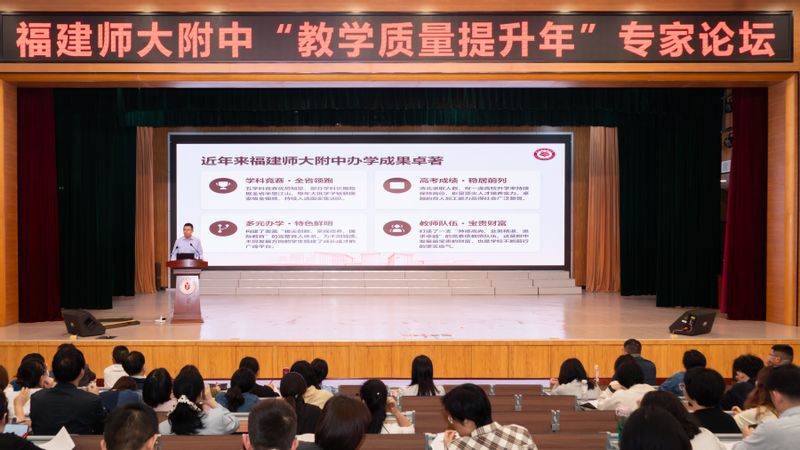 为深入推进我校“教学质量提升年”建设,凝聚全校合力推动学校高质量发展,4月15日下午,我校“教学质量提升年”专家论坛在报告厅开讲。本次论坛特邀福州市教育研究院李棽副院长为全体教师作《守正创新、提质增效、再攀高峰》的专题讲座,全体教师参会学习。
