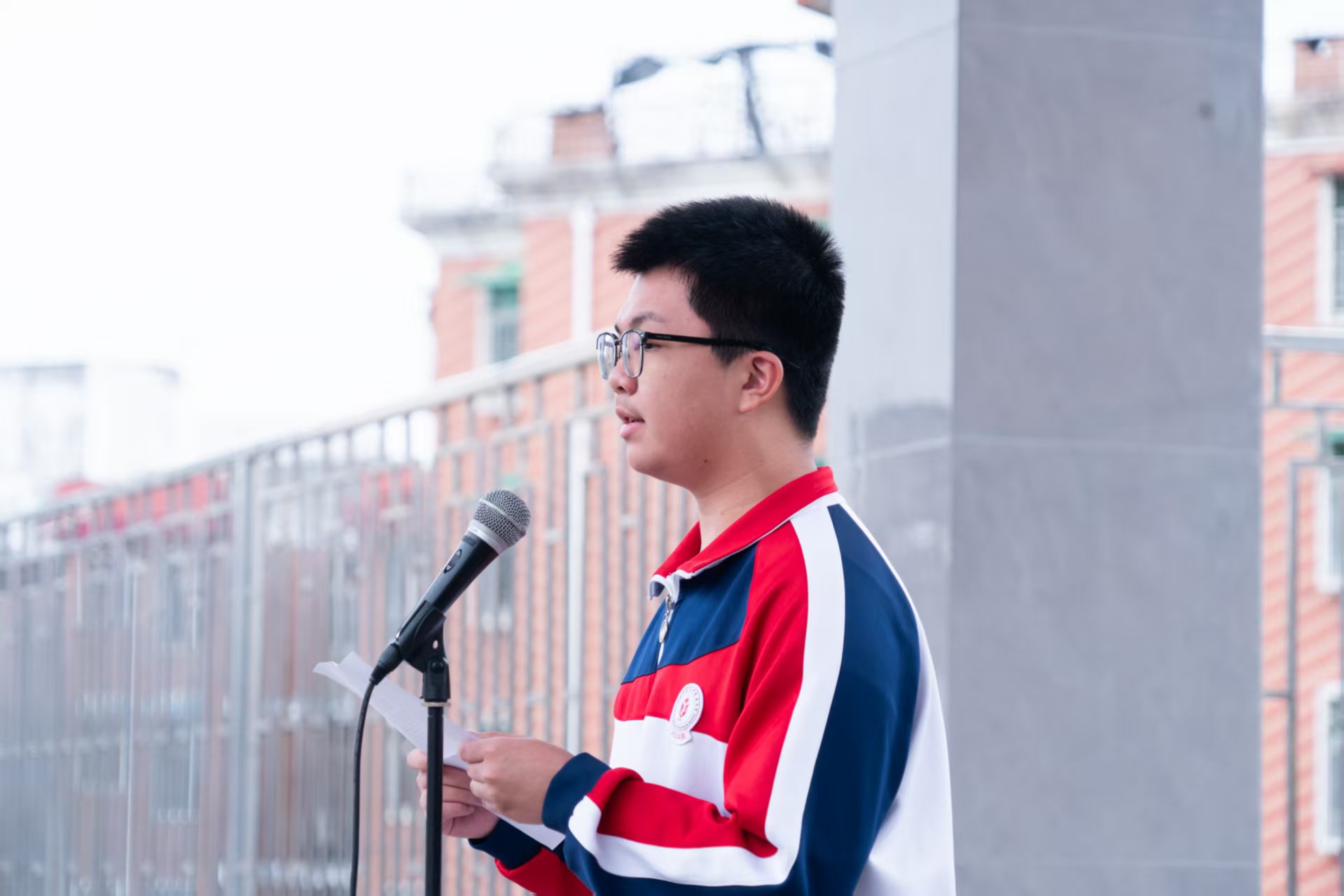 大家早上好!我是高二(4)班的许骏希,今天很荣幸以阅读明星代表和书友会会长的身份,站在这里进行国旗下讲话。我演讲的主题是《于文字深处,重建精神的故乡》。