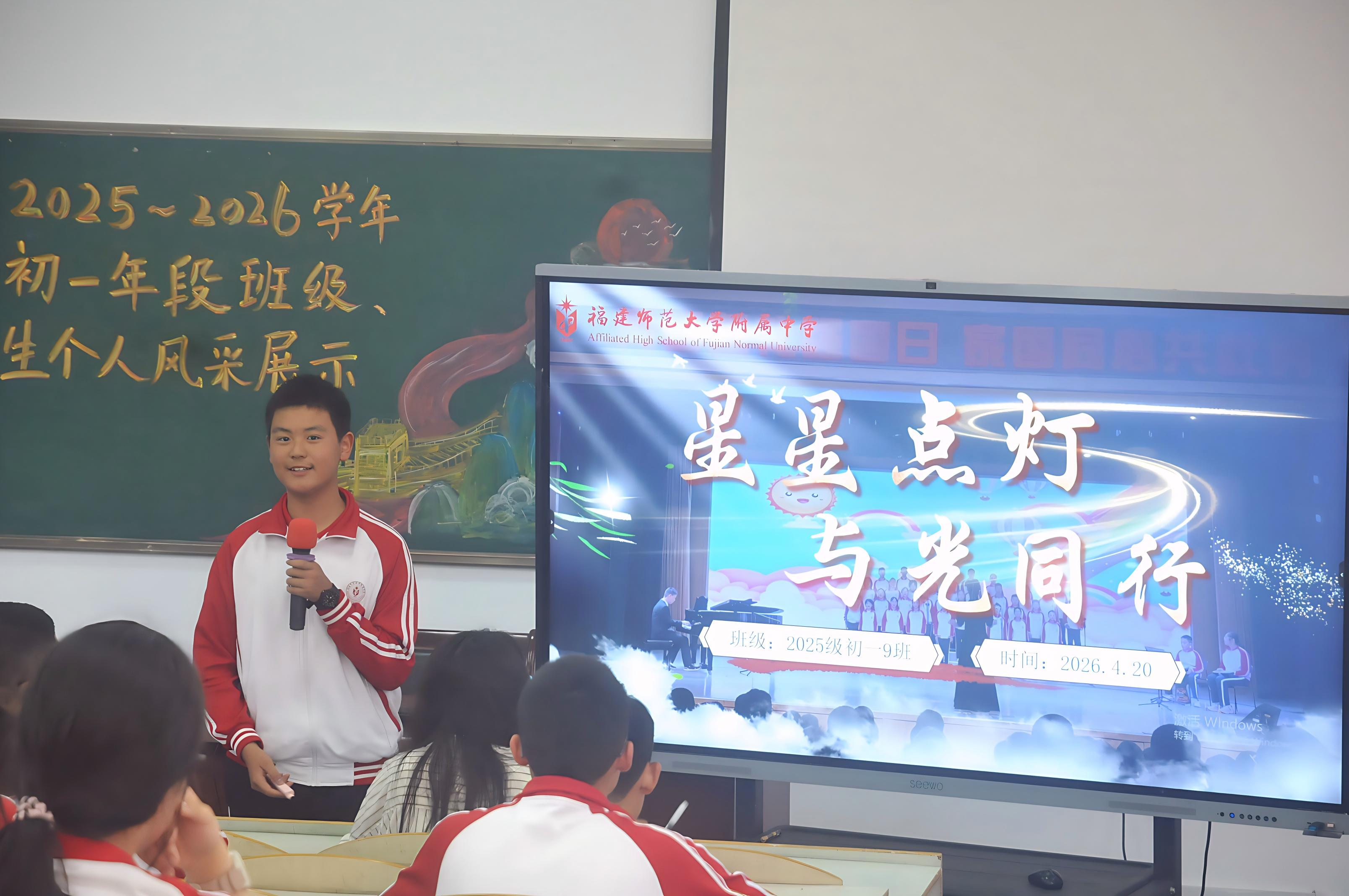 4月20日下午,为了增强班级凝聚力,展示初一学子昂扬向上的精神风貌,营造积极健康的校园文化氛围,福建师大附中初一年段举行了“班级、学生个人风采展示”活动。年段长陈宏文、陈凌凌及教师代表出席,各班学生代表参与。现场气氛热烈,掌声雷动,充分展现了附中学子的青春活力与无限创意。